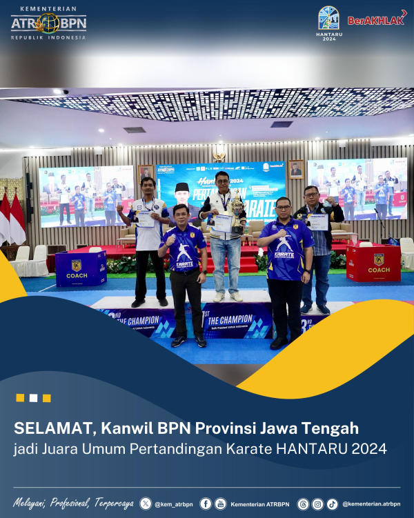 Jakarta - Kantor Wilayah Badan Pertanahan Nasional (Kanwil BPN) Provinsi Jawa Tengah menjadi juara umum dalam gelaran Pertandingan Karate HANTARU 2024 yang berlangsung pada Jumat (04/10/2024). Juar... Selengkapnya